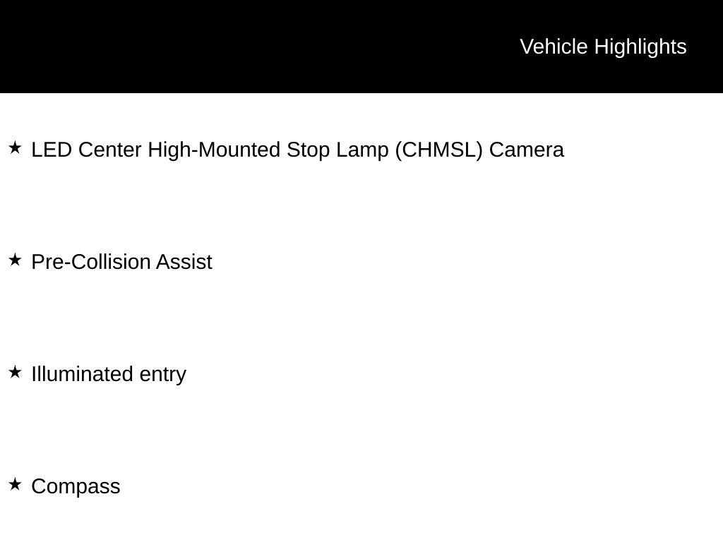 - LED Center High-Mounted Stop Lamp (CHMSL) Camera