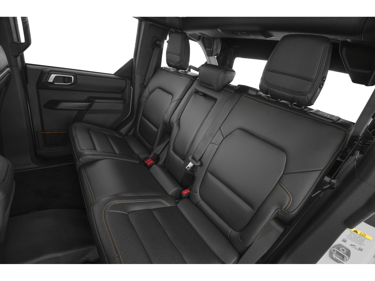 4-Wheel Disc Brakes, 7 Speakers, ABS brakes, Air Conditioning, Alloy wheels, AM/FM radio: SiriusXM with 360L, AM/FM Stereo, Auto High-beam Headlights, Auto-dimming Rear-View mirror, Black Appearance Package, Black Molded-In-Color Door Handles, Black Molded-In-Color Fender Flares, Black Molded-In-Color Sideview Mirror Caps, Black-Painted Molded-In-Color Grille, Brake assist, Compass, Delay-off headlights, Driver door bin, Driver vanity mirror, Dual front impact airbags, Dual front side impact airbags, Electronic Stability Control, Emergency communication system: 911 Assist, Equipment Group 331A Standard Package, Exterior Parking Camera Rear, Front & Rear Floor Liners w/o Carpet Floor Mats, Front anti-roll bar, Front Bucket Seats, Front Center Armrest, Front fog lights, Front reading lights, Front wheel independent suspension, Fully automatic headlights, Hard Top Sound Deadening Headliner, Heated door mirrors, Heated front seats, Heated steering wheel, High Clearance Fender Flares, High Clearance Suspension, Illuminated entry, Integrated roll-over protection, Internet access capable: FordPass Connect, Leather Shift Knob, Low tire pressure warning, Marine Grade Vinyl Heated Bucket Seats, Occupant sensing airbag, Outside temperature display, Overhead airbag, Overhead console, Panic alarm, Passenger door bin, Passenger vanity mirror, Position-Sensitive Bilstein Shock Absorbers, Power door mirrors, Power steering, Power windows, Radio data system, Raptor-Style Running Board, Rear-Window Defroster & Washer, Remote keyless entry, Sasquatch Package, Security system, Shadow Black Painted Hard Top, SiriusXM w/360L, Speed control, Split folding rear seat, Steering wheel mounted audio controls, SYNC 4, Tachometer, Telescoping steering wheel, Tilt steering wheel, Traction control, Trip computer, Variably intermittent wipers, Voltmeter, Wheels: 17 Carbonized Gray Painted Aluminum, Wheels: 17 Carbonized Gray-Painted Aluminum.