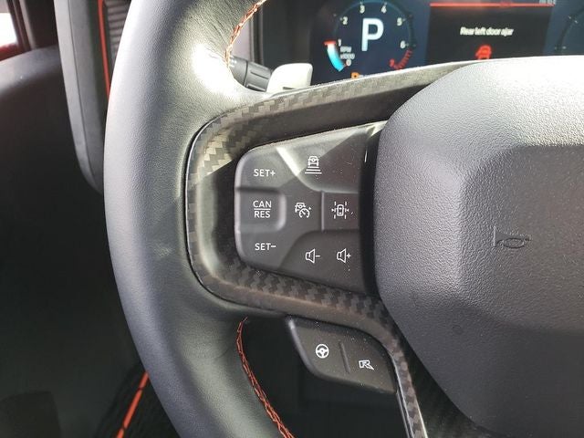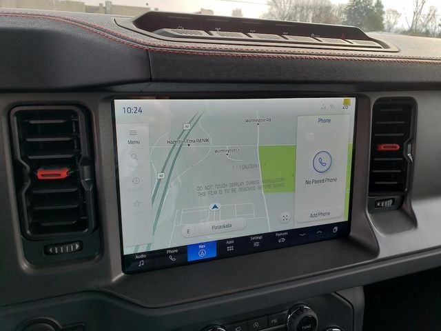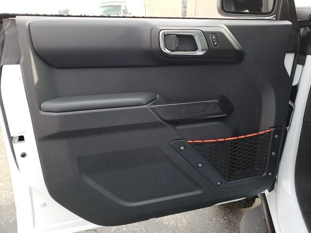 12 Speakers, 4-Wheel Disc Brakes, ABS brakes, Air Conditioning, Alloy wheels, AM/FM radio: SiriusXM with 360L, Auto High-beam Headlights, Auto-dimming Rear-View mirror, Automatic temperature control, Black Appearance Raptor Side Graphic, Brake assist, Bronco-Branded Console Cupholder, Compass, Connected Navigation, Convertible HardTop, Convertible roof lining, Delay-off headlights, Driver door bin, Driver vanity mirror, Dual front impact airbags, Dual front side impact airbags, Electronic Stability Control, Emergency communication system: 911 Assist, Equipment Group 374A Lux Package, Exterior Parking Camera Rear, Ford Integrated Tether System (FITS) Accessory Pkg, Front anti-roll bar, Front Bucket Seats, Front Center Armrest, Front dual zone A/C, Front fog lights, Front reading lights, Front wheel independent suspension, Fully automatic headlights, Garage door transmitter, Glass rear window, Gloss Black Sideview Mirror Skull Caps, Hard Top Sound Deadening Headliner, Heated door mirrors, Heated front seats, Heated steering wheel, Illuminated entry, Integrated roll-over protection, Interior Carbon Fiber Pack, Internet access capable: FordPass Connect, Leather Shift Knob, Leather-Trimmed/Vinyl Bucket Seats, Low Gloss Black High Coverage Fender Flares, Low tire pressure warning, Marine Grade Vinyl Bucket Seats, Navigation system: Connected Navigation, Occupant sensing airbag, Outside temperature display, Overhead airbag, Overhead console, Panic alarm, Passenger door bin, Passenger vanity mirror, Power door mirrors, Power steering, Power windows, Radio data system, Radio: B&O Sound System by Bang & Olufsen, Raptor Black Appearance Package, Rear anti-roll bar, Rear seat center armrest, Rear window defroster, Rear window wiper, Rear-Window Defroster & Washer, Remote keyless entry, Security system, Shadow Black Painted Hard Top, SiriusXM w/360L, Speed control, Split folding rear seat, Steering wheel mounted audio controls, SYNC 4, Tachometer, Telescoping steering wheel, Tilt steering wheel, Traction control, Trip computer, Turn signal indicator mirrors, Variably intermittent wipers, Voltmeter, Wheels: 17 Black High Gloss-Painted Aluminum, Wheels: 17 Dark Carbonized Gray Alloy Painted.