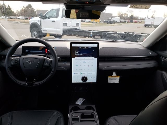 Mustang Mach-E Premium, 4D Sport Utility, Dual Electric Motor, Single-Speed Automatic, AWD, Glacier Gray Metallic TriCoat, Black Onyx Premium Synthetic, Equipment Group 300A Standard Package, Navigation system: Connected Navigation, 10 Speakers, 4-Wheel Disc Brakes, ABS brakes, Air Conditioning, Alloy wheels, AM/FM radio: SiriusXM with 360L, Apple CarPlay/Android Auto, Auto High-beam Headlights, Auto-dimming Rear-View mirror, Automatic temperature control, Brake assist, Bumpers: body-color, Compass, Delay-off headlights, Driver door bin, Driver vanity mirror, Dual front impact airbags, Dual front side impact airbags, Electronic Stability Control, Emergency communication system: 911 Assist, Exterior Parking Camera Rear, Four wheel independent suspension, Front anti-roll bar, Front Bucket Seats, Front Center Armrest, Front dual zone A/C, Front reading lights, Fully automatic headlights, Garage door transmitter, Heated door mirrors, Heated front seats, Heated steering wheel, Heated/Ventilated Perforated ActiveX Bucket Seats, Illuminated entry, Internet access capable: FordPass Connect, Knee airbag, Low tire pressure warning, Memory seat, Mobile Power Cord (120V/240V), Occupant sensing airbag, Outside temperature display, Overhead airbag, Overhead console, Panic alarm, Passenger door bin, Passenger vanity mirror, Power door mirrors, Power driver seat, Power Liftgate, Power passenger seat, Power steering, Power windows, Radio data system, Radio: B&O Sound System by Bang & Olufsen, Rain sensing wipers, Rear anti-roll bar, Rear seat center armrest, Rear side impact airbag, Rear window defroster, Rear window wiper, Remote keyless entry, Security system, SiriusXM w/360L, Speed control, Speed-sensing steering, Speed-Sensitive Wipers, Split folding rear seat, Spoiler, Steering wheel mounted audio controls, SYNC 4A w/Enhanced Voice Recognition, Telescoping steering wheel, Tilt steering wheel, Traction control, Trip computer, Turn signal indicator mirrors, Variably intermittent wipers, Ventilated front seats, Wheels: 19 Bright Machined-Face Aluminum, Mustang Mach-E Premium, 4D Sport Utility, Dual Electric Motor, Single-Speed Automatic, AWD, Glacier Gray Metallic TriCoat, Black Onyx Premium Synthetic, Equipment Group 300A Standard Pack
