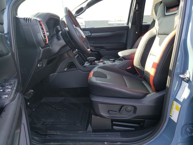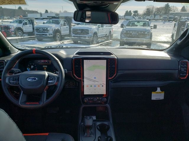 4WD, 10 Speakers, 4-Wheel Disc Brakes, 4.27 Axle Ratio, ABS brakes, Air Conditioning, Alloy wheels, AM/FM radio: SiriusXM, Auto High-beam Headlights, Auto-dimming Rear-View mirror, Automatic temperature control, Brake assist, Compass, Delay-off headlights, Driver door bin, Driver vanity mirror, Dual front impact airbags, Dual front side impact airbags, Electronic Stability Control, Emergency communication system: SYNC 4 911 Assist, Equipment Group 800A Standard, Front & Rear Splash Guards/Mud Flaps, Front anti-roll bar, Front Bucket Seats, Front Center Armrest, Front dual zone A/C, Front fog lights, Front reading lights, Front wheel independent suspension, Fully automatic headlights, Garage door transmitter, Heated door mirrors, Heated front seats, Heated steering wheel, Illuminated entry, Internet access capable: FordPass Connect 4G, Leather Shift Knob, Leather steering wheel, Leather-Trimmed Front Heated Bucket Seats, Low tire pressure warning, Memory seat, Navigation system: Connected Navigation, Occupant sensing airbag, Outside temperature display, Overhead airbag, Overhead console, Panic alarm, Passenger door bin, Passenger vanity mirror, Power door mirrors, Power driver seat, Power passenger seat, Power steering, Power windows, Radio: B&O Sound System by Bang & Olufsen, Rain sensing wipers, Raptor Exterior Graphics, Rear reading lights, Rear seat center armrest, Rear step bumper, Rear window defroster, Remote keyless entry, Security system, SiriusXM Satellite Radio, Speed control, Speed-sensing steering, Steering wheel mounted audio controls, SYNC 4A, Telescoping steering wheel, Tilt steering wheel, Tough Bed Spray-In Bedliner, Traction control, Trip computer, Turn signal indicator mirrors, Variably intermittent wipers, Voltmeter, Wheels: 17 Forged Beadlock Capable, Wheels: 17 Gray-Painted Aluminum, 4WD.