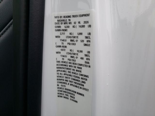 4WD, 120V/400W Outlet, 17 Argent Painted Steel Wheels, 190 Amp Alternator, 4 Speakers, 4-Ton Hydraulic Jack, 4-Wheel Disc Brakes, 410 Amp Dual Alternators, ABS brakes, Air Conditioning, AM/FM radio, AM/FM Stereo w/MP3 Player, Brake assist, Bright Grille, Center High-Mounted Stop Lamp (CHMSL), Chrome Front Bumper, Compass, Delay-off headlights, Dual 68 AH/65 AGM Battery, Dual front impact airbags, Dual front side impact airbags, Dual rear wheels, Emergency communication system: SYNC 4 911 Assist, Front anti-roll bar, Front Center Armrest w/Storage, Front License Plate Bracket, Front reading lights, Fully automatic headlights, GVWR: 14,000 lb Payload Package, Halogen Fog Lamps, HD Vinyl 40/20/40 Split Bench Seat, Heated door mirrors, Illuminated entry, Internet access capable: FordPass Connect 5G, Low tire pressure warning, Order Code 640A, Outside temperature display, Overhead airbag, Overhead console, Panic alarm, Passenger cancellable airbag, Passenger vanity mirror, Platform Running Boards, Power door mirrors, Power steering, Power windows, Rear anti-roll bar, Rear View Camera & Prep Kit, Remote keyless entry, Remote Start, Security system, Snow Plow Prep Package, Speed control, Steering wheel mounted audio controls, SYNC 4 Communication & Entertainment System, Tachometer, Telescoping steering wheel, Tilt steering wheel, Traction control, Trailer Brake Controller, Trip computer, Turn signal indicator mirrors, Variably intermittent wipers, XL Chrome Package, 4WD.