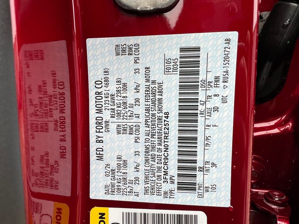 360-Degree Camera with Trail View, 4-Wheel Disc Brakes, 6 Speakers, ABS brakes, Air Conditioning, Alloy wheels, AM/FM radio: SiriusXM with 360L, AM/FM Stereo, Apple CarPlay/Android Auto, Auto High-beam Headlights, Auto-dimming Rear-View mirror, Automatic temperature control, Brake assist, Cargo Management System (Shelf/Divider/Table), Compass, Connected Navigation (1-Year Included), Delay-off headlights, Driver door bin, Driver vanity mirror, Dual front impact airbags, Dual front side impact airbags, Electronic Stability Control, Emergency communication system: SYNC 4 911 Assist, Equipment Group 300A Standard Package, Exterior Parking Camera Rear, Ford Connectivity Package (1-Year Included), Four wheel independent suspension, Front and Rear Floor Liners Without Carpet Mats, Front anti-roll bar, Front Bucket Seats, Front Center Armrest, Front Driver/Passenger Seat Back Map Pockets, Front dual zone A/C, Front fog lights, Front Parking Sensors, Front reading lights, Fully automatic headlights, Heated door mirrors, Heated front seats, Heated steering wheel, Illuminated entry, Internet access capable: 5G Modem - Ford Connectivity Package, Knee airbag, Low tire pressure warning, Memory seat, Occupant sensing airbag, Outer Banks Tech Package+, Outside temperature display, Overhead airbag, Overhead console, Panic alarm, Passenger door bin, Passenger vanity mirror, Power door mirrors, Power driver seat, Power Moonroof, Power passenger seat, Power steering, Power windows, Radio data system, Radio: HD w/B&O Sound System by Bang & Olufsen, Rear anti-roll bar, Rear Parking Sensors, Rear reading lights, Rear seat center armrest, Rear window defroster, Rear window wiper, Remote keyless entry, Reverse Brake Assist, Security system, SiriusXM with 360L, Speed control, Speed-sensing steering, Speed-Sensitive Wipers, Split folding rear seat, Steering wheel mounted audio controls, SYNC 4 with Enhanced Voice Recognition, Tachometer, Telescoping steering wheel, Tilt steering wheel, Traction control, Trip computer, Variably intermittent wipers, Wheels: 18 Ebony Black.