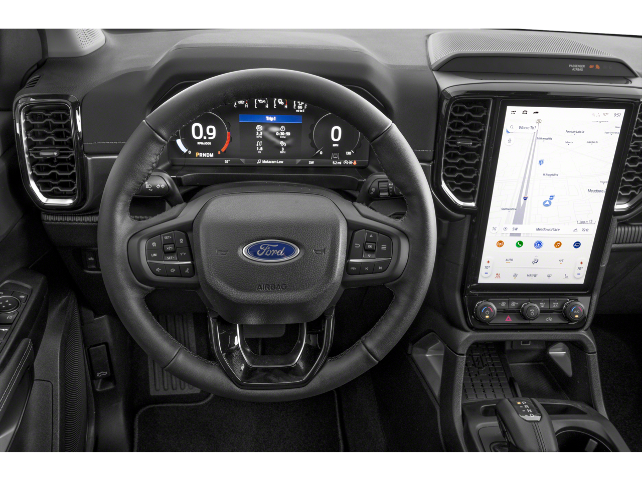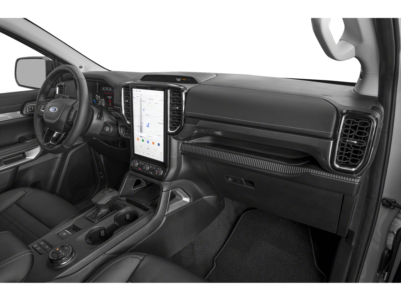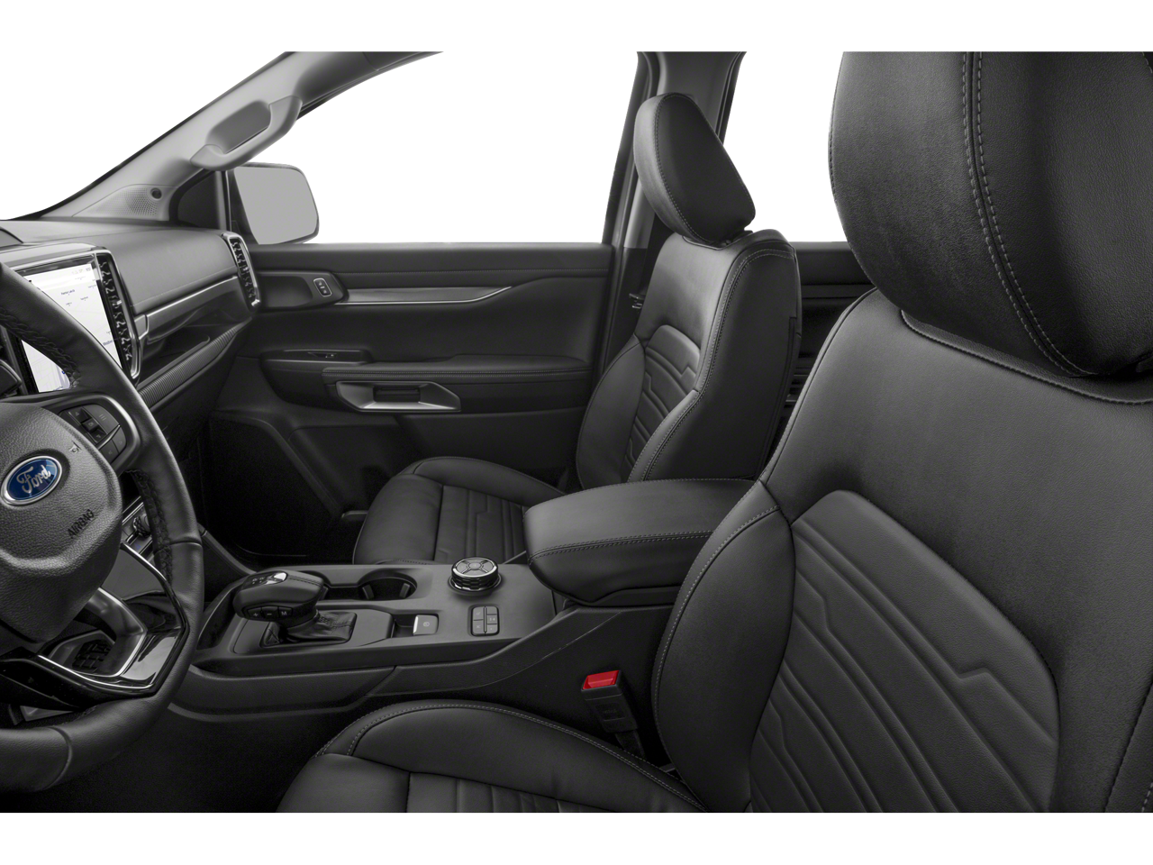 4WD, 10 Speakers, 4-Wheel Disc Brakes, ABS brakes, ActiveX Trimmed Front Heated Bucket Seats, Air Conditioning, Alloy wheels, AM/FM radio: SiriusXM with 360L, Auto High-beam Headlights, Auto-dimming Rear-View mirror, Automatic temperature control, Black Appearance Package, Black Center Bar and Surround Grille, Black Grille Surround, Black Rear Bumper, Black Running Boards, Body-Color Painted Front Fascia, Brake assist, Chrome Center Bar and Grille Surround, Class IV Trailer Hitch Receiver, Compass, Convenience Package, Delay-off headlights, Driver door bin, Driver vanity mirror, Dual front impact airbags, Dual front side impact airbags, Electronic Stability Control, Emergency communication system: SYNC 4 911 Assist, Equipment Group 500A Standard, Front and Rear Black Ford Ovals, Front and Rear Splash Guards/Mud Flaps, Front anti-roll bar, Front Bucket Seats, Front Center Armrest, Front dual zone A/C, Front fog lights, Front reading lights, Front wheel independent suspension, Fully automatic headlights, FX4 Off-Road Box Decal, FX4 Off-Road Package, FX4 Selectable Drive Modes, Garage door transmitter, Gray Painted Front Fascia and Rear Bumper, Heated door mirrors, Heated front seats, Heated steering wheel, Illuminated entry, Leather Shift Knob, LED Bed Lighting, Low tire pressure warning, Memory seat, Navigation system: Connected Navigation, Occupant sensing airbag, Off-Road Screen in Center Stack, Off-Road Tuned Shocks, Outside temperature display, Overhead airbag, Overhead console, Painted Body-Color Wheel Lip Molding, Panic alarm, Passenger door bin, Passenger vanity mirror, Power door mirrors, Power driver seat, Power passenger seat, Power steering, Power windows, Pro Power Onboard - 400W, Radio: B&O Sound System by Bang and Olufsen, Rain sensing wipers, Rear reading lights, Rear seat center armrest, Rear step bumper, Rear window defroster, Remote keyless entry, Security system, SiriusXM with 360L (3-Year Plan), SiriusXM with 360L and 3-Month Trial Subscription, Speed control, Speed-sensing steering, Sport Appearance Package, Sport Box Decal, Steering wheel mounted audio controls, SYNC 4A with Connected Navigation, Telescoping steering wheel, Tilt steering wheel, Tough Bed Spray-in Bedliner, Traction control, Trail Control, Trailer Tow Package, Tray Style Floor Liner with Carp