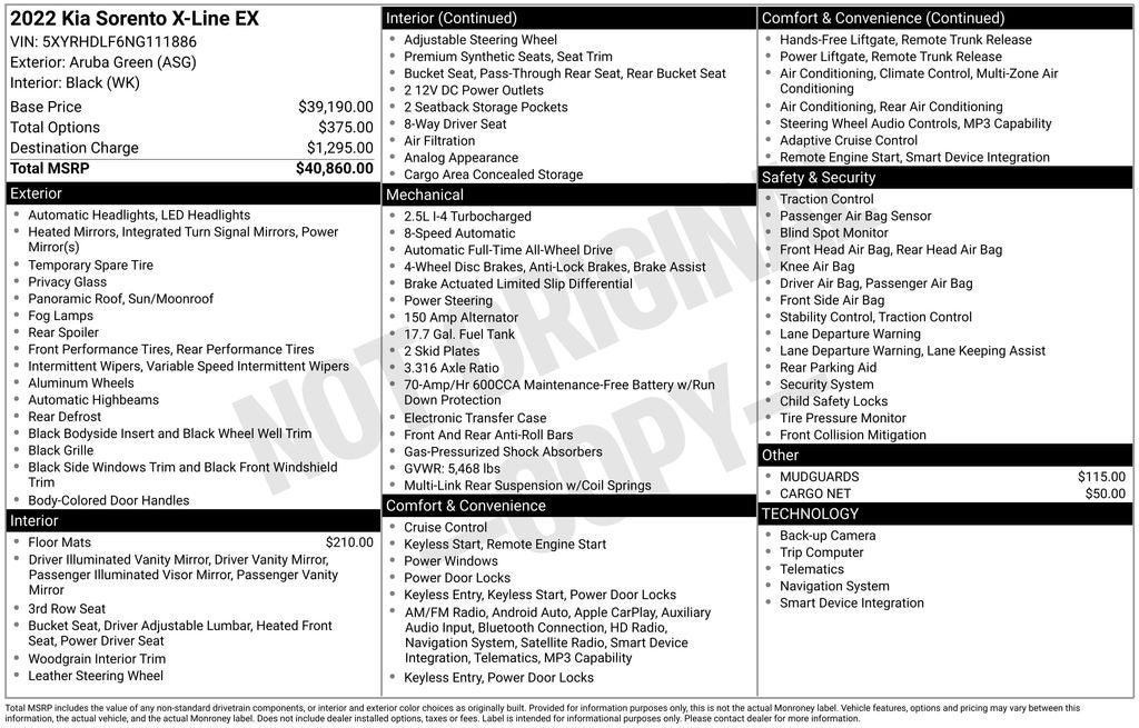 - Vehicle Name: Kia Sorento