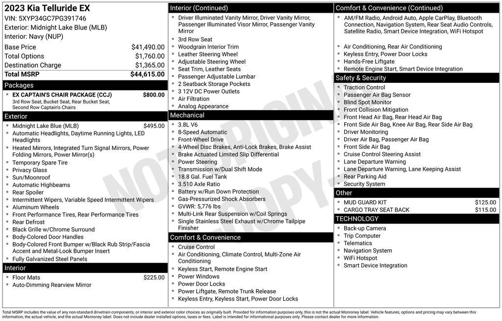 Safety is a top priority in the Telluride EX, with features like forward collision avoidance, lane keep assist, and blind spot monitoring to give you peace of mind on the road. The rear-view camera and parking sensors make maneuvering a breeze, while the advanced airbag system provides comprehensive protection.