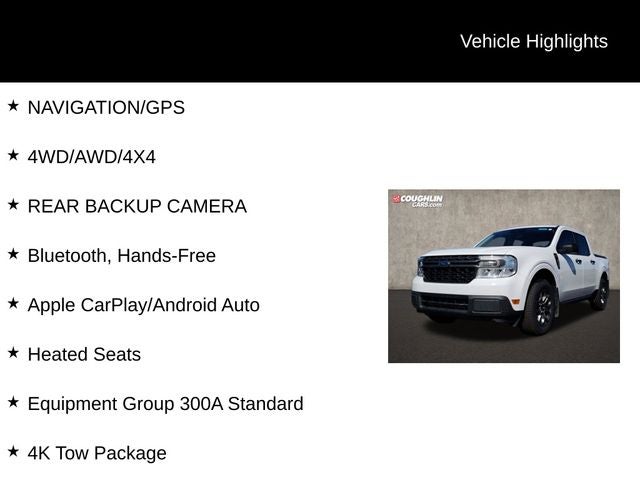 Powered by the efficient EcoBoost 2.0L I4 engine paired with an 8-Speed Automatic transmission and All-Wheel Drive, this Maverick delivers an exceptional balance of performance and fuel economy, with an EPA-estimated 22 MPG in the city and 29 MPG on the highway.