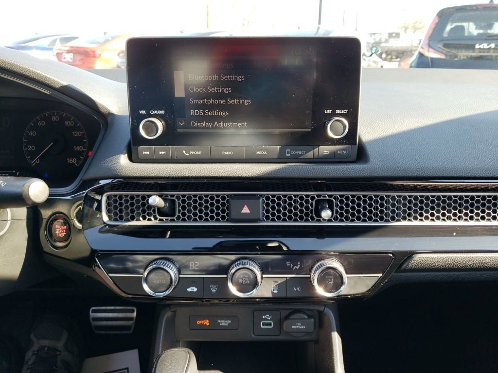 Inside, the Civic Sport's cabin is well-appointed, with a focus on both style and functionality. The 8-speaker audio system, automatic climate control, and power windows and locks ensure a comfortable and convenient driving experience. The leather-wrapped steering wheel and shift knob add a touch of sophistication, while the Bluetooth® connectivity and Apple CarPlay/Android Auto integration keep you seamlessly connected on the go.