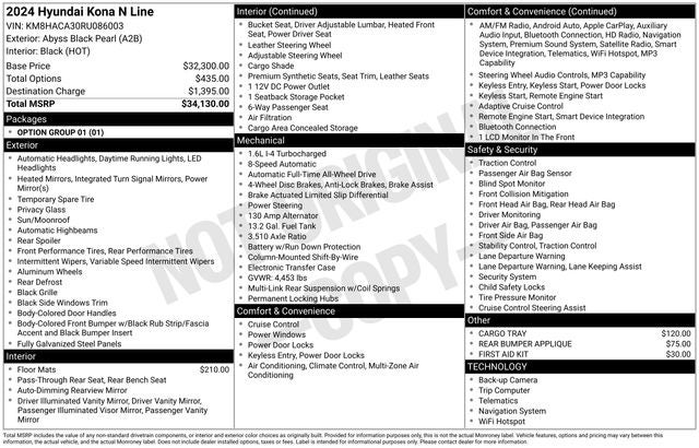 - - - THIS 2024 HYUNDAI KONA N LINE ALL WHEEL DRIVE IS A ONE OWNER LOCAL TRADE WITH A PERFECT HISTORY REPORT AND THE REMAINDER OF THE 5 YEAR 60,000 MILE FACTORY WARRANTY !!!