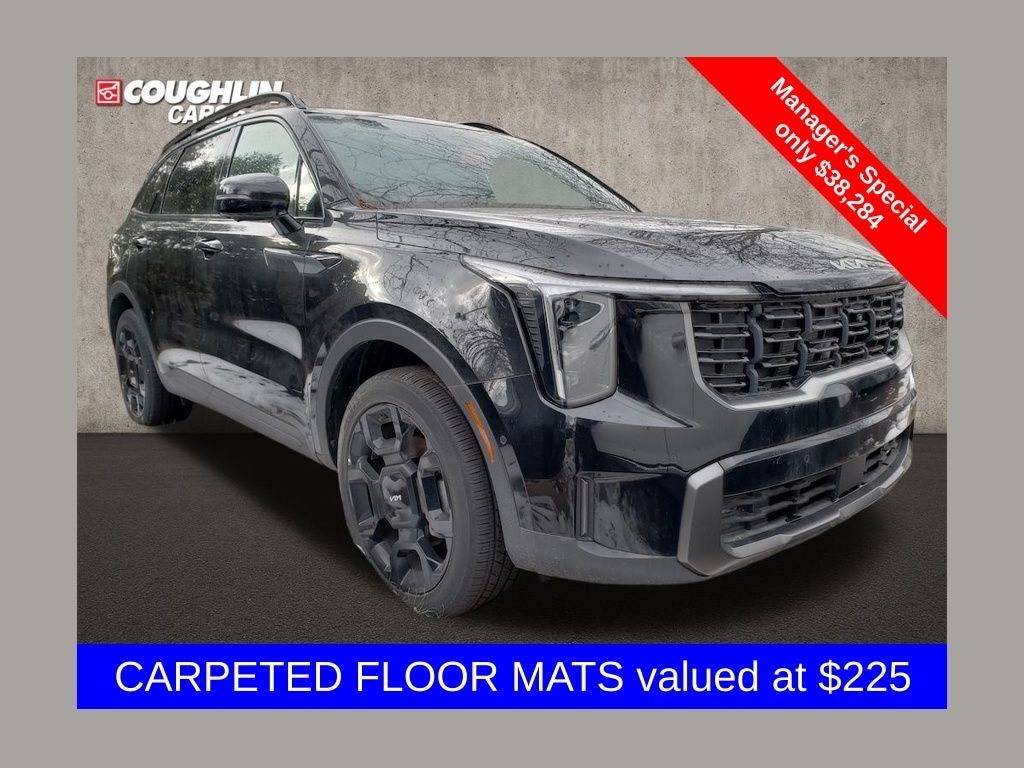 Equipped with AWD, 12 Speakers, 3.316 Axle Ratio, 3rd row seats: split-bench, 4-Wheel Disc Brakes, ABS brakes, Air Conditioning, Alloy wheels, AM/FM radio: SiriusXM, Apple CarPlay & Android Auto, Auto High-beam Headlights, Auto-dimming Rear-View mirror, Automatic temperature control, Brake assist, Bumpers: body-color, Carpeted Floor Mats, Delay-off headlights, Driver door bin, Driver vanity mirror, Dual front impact airbags, Dual front side impact airbags, Electronic Stability Control, Emergency communication system: 911 Connect, Exterior Parking Camera Rear, Four wheel independent suspension, Front anti-roll bar, Front Bucket Seats, Front Center Armrest, Front dual zone A/C, Front fog lights, Front reading lights, Fully automatic headlights, Garage door transmitter: HomeLink, Heated & Ventilated Front Bucket Seats, Heated door mirrors, Heated front seats, Heated rear seats, Heated steering wheel, Illuminated entry, Knee airbag, Leather steering wheel, Low tire pressure warning, Memory seat, Navigation System, Occupant sensing airbag, Outside temperature display, Overhead airbag, Overhead console, Panic alarm, Passenger door bin, Passenger vanity mirror, Perforated Genuine Leather Seat Trim, Power door mirrors, Power driver seat, Power Liftgate, Power moonroof, Power passenger seat, Power steering, Power windows, Radio data system, Radio: AM/FM Bose Premium Audio System, Rain sensing wipers, Rear anti-roll bar, Rear reading lights, Rear side impact airbag, Rear window defroster, Rear window wiper, Remote keyless entry, Security system, Smart Key w/ Push Button and Remote Start, Speed control, Speed-sensing steering, Split folding rear seat, Spoiler, Steering wheel mounted audio controls, Tachometer, Telescoping steering wheel, Tilt steering wheel, Traction control, Trip computer, Turn signal indicator mirrors, Variably intermittent wipers, Ventilated front seats, and Wheels: 8.5J x 20 Gloss Black X-Line Alloy.