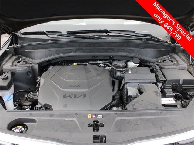 Equipped with Towing Package (Self Leveling Rear Suspension and Towing Hitch Standard), 10 Speakers, 3.648 Axle Ratio, 3rd row seats: split-bench, 4-Wheel Disc Brakes, ABS brakes, Air Conditioning, Alloy wheels, AM/FM radio: SiriusXM, Apple CarPlay & Android Auto, Auto High-beam Headlights, Auto-dimming Rear-View mirror, Automatic temperature control, Brake assist, Bumpers: body-color, Carpet Floor Mats, Compass, Delay-off headlights, Driver door bin, Driver vanity mirror, Dual front impact airbags, Dual front side impact airbags, Electronic Stability Control, Emergency communication system: 911 Connect, Exterior Parking Camera Rear, Four wheel independent suspension, Front anti-roll bar, Front Bucket Seats, Front Center Armrest, Front dual zone A/C, Front fog lights, Front reading lights, Fully automatic headlights, Garage door transmitter: HomeLink, harman/kardon® Speakers, Heads-Up Display, Heated & Ventilated Front Bucket Seats, Heated door mirrors, Heated front seats, Heated rear seats, Heated steering wheel, Illuminated entry, Knee airbag, Leather Shift Knob, Leather steering wheel, Low tire pressure warning, Memory seat, Navigation System, Occupant sensing airbag, Outside temperature display, Overhead airbag, Overhead console, Panic alarm, Passenger door bin, Passenger vanity mirror, Power door mirrors, Power driver seat, Power Liftgate, Power moonroof, Power passenger seat, Power steering, Power windows, Premium Nappa Leather Seat Trim, Radio data system, Radio: AM/FM Harman Kardon Audio System, Rain sensing wipers, Rear air conditioning, Rear anti-roll bar, Rear audio controls, Rear reading lights, Rear side impact airbag, Rear window defroster, Rear window wiper, Reclining 3rd row seat, Remote keyless entry, Roof rack: rails only, Security system, Smart Key w/ Push Button and Remote Start, Speed control, Speed-sensing steering, Split folding rear seat, Spoiler, Steering wheel mounted audio controls, Tachometer, Telescoping steering wheel, Tilt steering wheel, Traction control, Trip computer, Turn signal indicator mirrors, Variably intermittent wipers, Ventilated front seats, Ventilated rear seats, and Wheels: 20 x 7.5 Black Finish.
