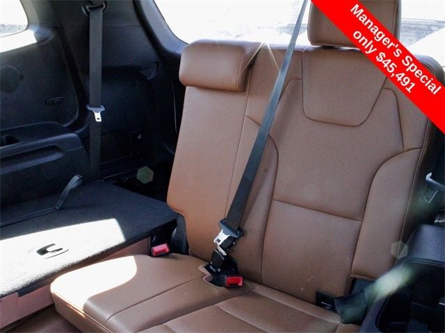 Equipped with Terracotta Interior Color Package, 10 Speakers, 3.648 Axle Ratio, 3rd row seats: split-bench, 4-Wheel Disc Brakes, ABS brakes, Air Conditioning, Alloy wheels, AM/FM radio: SiriusXM, Apple CarPlay & Android Auto, Auto High-beam Headlights, Auto-dimming Rear-View mirror, Auto-leveling suspension, Automatic temperature control, Brake assist, Bumpers: body-color, Carpet Floor Mats, Compass, Delay-off headlights, Driver door bin, Driver vanity mirror, Dual front impact airbags, Dual front side impact airbags, Electronic Stability Control, Emergency communication system: 911 Connect, Exterior Parking Camera Rear, Four wheel independent suspension, Front anti-roll bar, Front Bucket Seats, Front Center Armrest, Front dual zone A/C, Front fog lights, Front reading lights, Fully automatic headlights, Garage door transmitter: HomeLink, harman/kardon® Speakers, Heated & Ventilated Front Bucket Seats, Heated door mirrors, Heated front seats, Heated steering wheel, Illuminated entry, Knee airbag, Leather Seat Trim, Leather Shift Knob, Leather steering wheel, Low tire pressure warning, Memory seat, Navigation System, Occupant sensing airbag, Outside temperature display, Overhead airbag, Overhead console, Panic alarm, Passenger door bin, Passenger vanity mirror, Power door mirrors, Power driver seat, Power Liftgate, Power moonroof, Power passenger seat, Power steering, Power windows, Radio data system, Radio: AM/FM Harman Kardon Audio System, Rear air conditioning, Rear anti-roll bar, Rear audio controls, Rear reading lights, Rear side impact airbag, Rear window defroster, Rear window wiper, Reclining 3rd row seat, Remote keyless entry, Roof rack: rails only, Security system, Smart Key w/ Push Button and Remote Start, Speed control, Speed-sensing steering, Split folding rear seat, Spoiler, Steering wheel mounted audio controls, Tachometer, Telescoping steering wheel, Tilt steering wheel, Traction control, Trip computer, Turn signal indicator mirrors, Variably intermittent wipers, Ventilated front seats, and Wheels: 18 x 7.5 Black Finish X-PRO Exclusive.