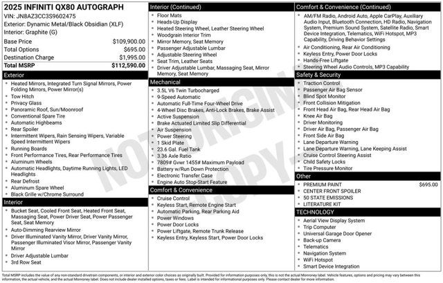 Whether you're embarking on a family adventure, commuting in style, or seeking a premium SUV that stands out from the crowd, this 2025 INFINITI QX80 AUTOGRAPH is the perfect choice. Experience the ultimate in luxury, performance, and technology by scheduling a test drive today.