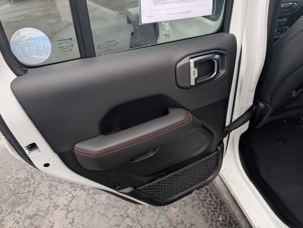 4-Wheel Disc Brakes, 4.10 Rear Axle Ratio, 4G LTE Wi-Fi Hot Spot, 8 Speakers, 97 MPH Vehicle Max Speed Calibration, ABS brakes, Air Conditioning, Alloy wheels, AM/FM radio: SiriusXM, Apple CarPlay, Apple CarPlay/Android Auto, Automatic temperature control, Aux Battery, Auxiliary Switches, Brake assist, Class II Receiver Hitch, Cloth Low-Back Bucket Seats, Compass, Connectivity - US/Canada, Convenience Group, Delay-off headlights, Driver door bin, Driver vanity mirror, Dual front impact airbags, Dual front side impact airbags, Electronic Stability Control, Emergency communication system: Jeep Connect, Front anti-roll bar, Front Bucket Seats, Front Center Armrest w/Storage, Front dual zone A/C, Front fog lights, Front License Plate Bracket (DISC), Front reading lights, Fully automatic headlights, Google Android Auto, Heated door mirrors, Heated Front Seats, Heated Steering Wheel, Illuminated entry, Integrated roll-over protection, Low tire pressure warning, Non-Lock Fuel Cap w/o Discriminator, Occupant sensing airbag, Outside temperature display, Overhead airbag, Panic alarm, ParkView Rear Back-Up Camera, Passenger door bin, Passenger vanity mirror, Performance Suspension, Power door mirrors, Power steering, Power windows, Quick Order Package 24R Rubicon, Radio data system, Radio: Uconnect 5 w/12.3 Display, Rear anti-roll bar, Rear reading lights, Remote keyless entry, Security system, Speed control, Split folding rear seat, Steering wheel mounted audio controls, Stop-Start Dual Battery System, Tachometer, Telescoping steering wheel, Tilt steering wheel, Traction control, Trip computer, Universal Garage Door Opener, Variably intermittent wipers, Voltmeter, Wheels: 17 x 7.5 Machined/Painted Black. 2025 Jeep Wrangler CARFAX One-Owner. Clean CARFAX.