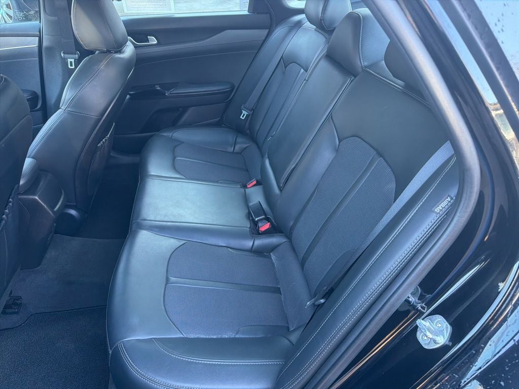 Equipped with Kia Certified Pre-Owned Certified, 4-Wheel Disc Brakes, 6 Speakers, ABS brakes, Air Conditioning, Alloy wheels, AM/FM radio: SiriusXM, Apple CarPlay & Android Auto, Auto High-beam Headlights, Automatic temperature control, Brake assist, Bumpers: body-color, Carpeted Floor Mats, Cloth/Leatherette Seat Trim, Delay-off headlights, Driver door bin, Driver vanity mirror, Dual front impact airbags, Dual front side impact airbags, Electronic Stability Control, Four wheel independent suspension, Front anti-roll bar, Front Bucket Seats, Front Center Armrest, Front dual zone A/C, Front fog lights, Front reading lights, Fully automatic headlights, Heated door mirrors, Illuminated entry, Knee airbag, Low tire pressure warning, Navigation System, Occupant sensing airbag, Outside temperature display, Overhead airbag, Overhead console, Panic alarm, Passenger door bin, Passenger vanity mirror, Power door mirrors, Power driver seat, Power steering, Power windows, Radio data system, Radio: AM/FM/MP3 Audio System, Rear anti-roll bar, Rear seat center armrest, Rear side impact airbag, Rear window defroster, Remote keyless entry, Security system, Speed control, Speed-sensing steering, Split folding rear seat, Spoiler, Sport steering wheel, Steering wheel mounted audio controls, Tachometer, Telescoping steering wheel, Tilt steering wheel, Traction control, Trip computer, Turn signal indicator mirrors, Variably intermittent wipers, and Wheels: 7.5J x 18 Gloss Black Machined Finish Alloy.